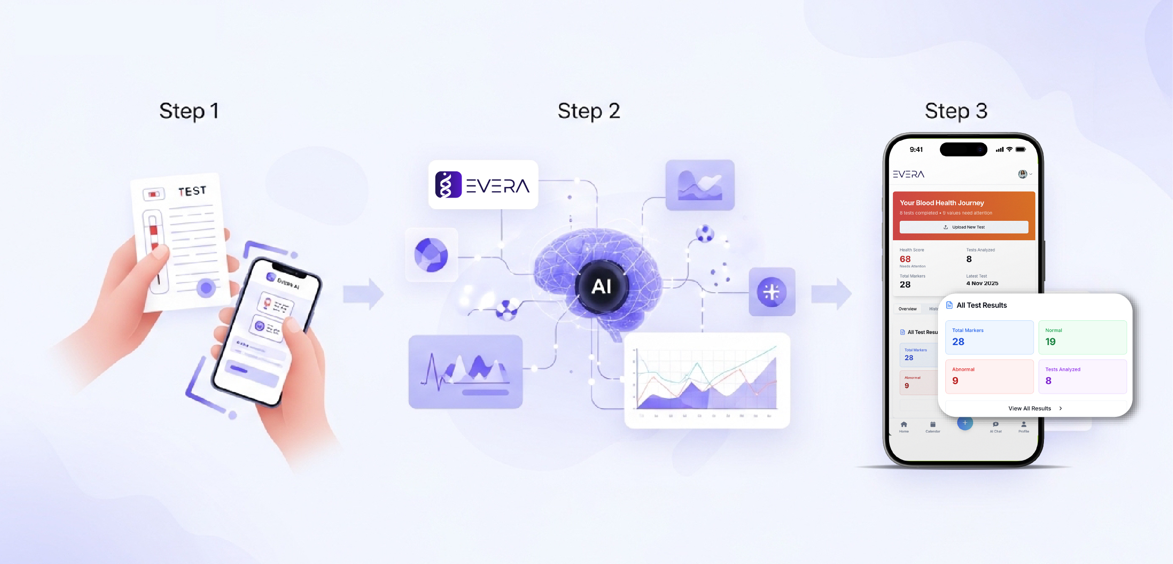 “Evera AI helped me finally understand my results and see my progress clearly. It became my daily health companion”